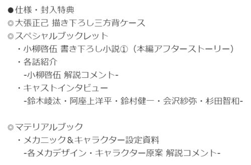 まだ1話も見てませんけど、特典だけはガッツリ読みましたよ(汗)。解説本が2種類ついてます。定価5万円超なのに、特典はこれだけ。 当時の記録集からの再録本。(初回限定)モノクロ印刷なのが残念。ただ、打ち切り後の4話分(=発動篇)の絵コンテが載…